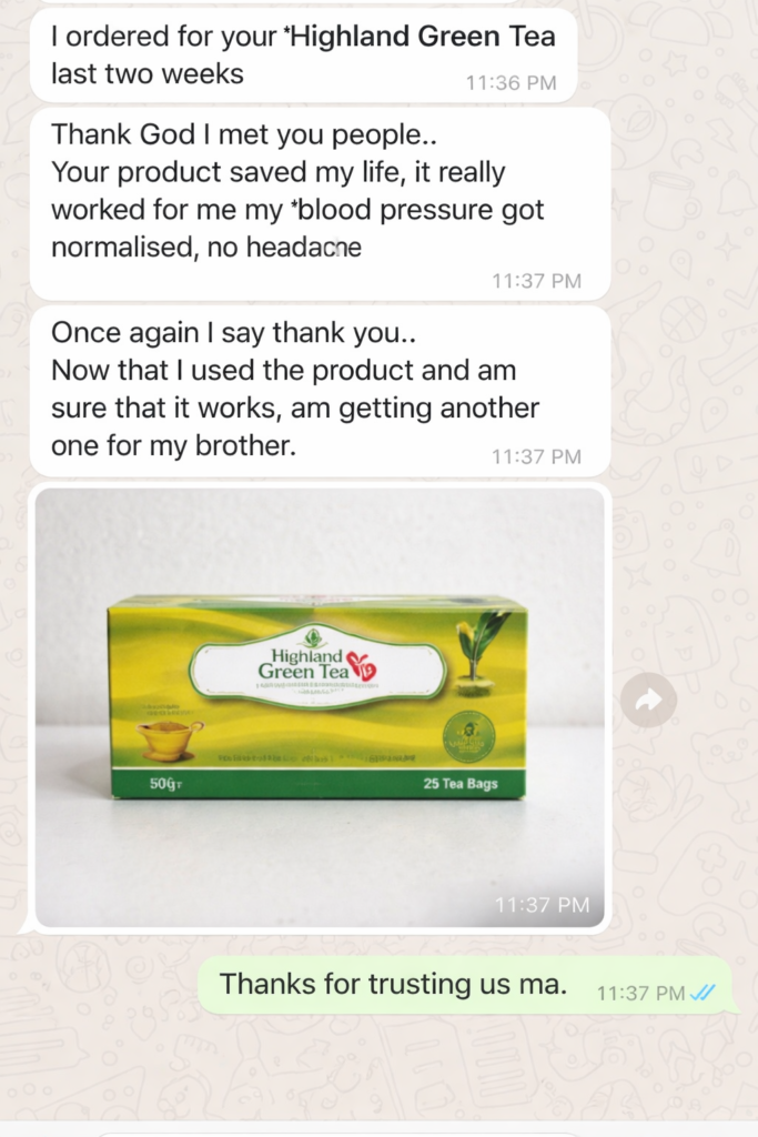 Highland Green Tea works like a natural support that helps keep your blood vessels clean and supports healthy blood circulation.Chest pain, shortness of breath, dizziness and constant headaches are some of the warning signs people with high blood pressure experience.